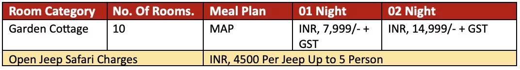 Note: - Above Packages are not applicable During the Janmashtmi festival